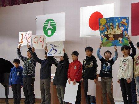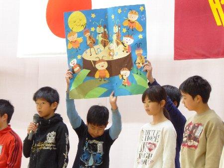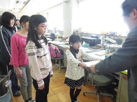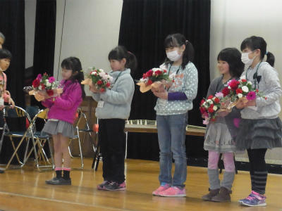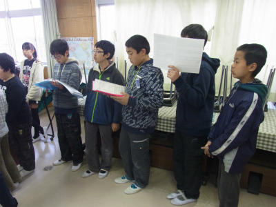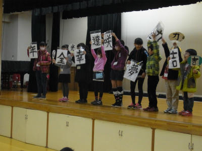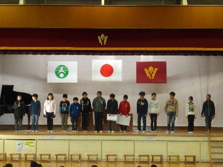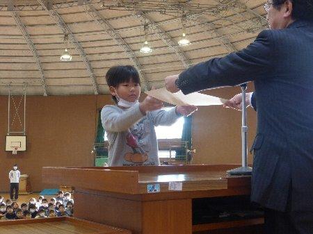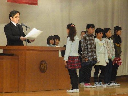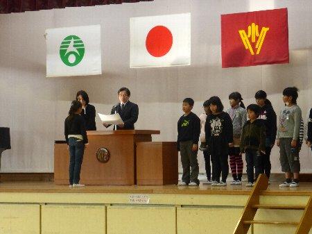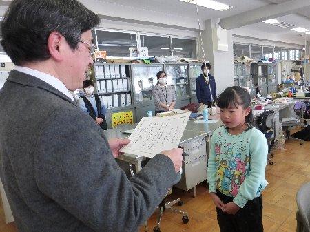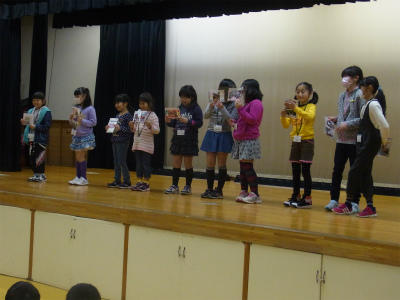 書き初め展や絵画展に入選した子どもたちへの賞状の伝達です。