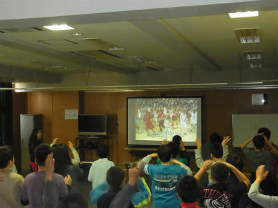 先輩の子どもたちも、新入部員を集めるために、いろいろ説明してあげています。
