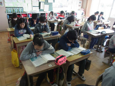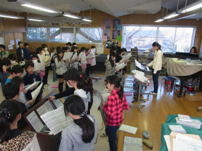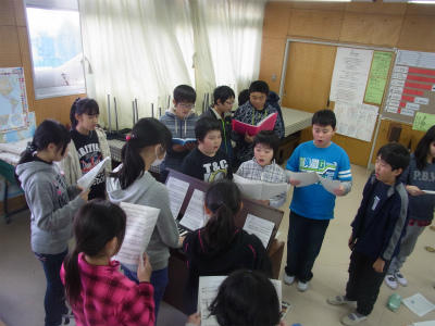 そして、卒業式で歌う「旅立ちの日に」は、中学生の歌を聴き、また、一緒に歌いました。