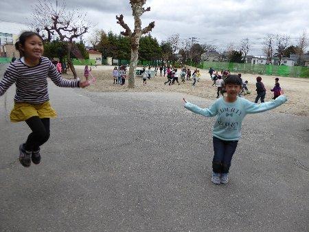 なわとび練習台は相変わらずの人気です。でも、明日から6年生が卒業記念で練習台を塗り直しますので、練習台が使えるのは今日が最後です。