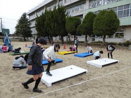 子どもたちは記録の更新めざして懸命にとんでいます。