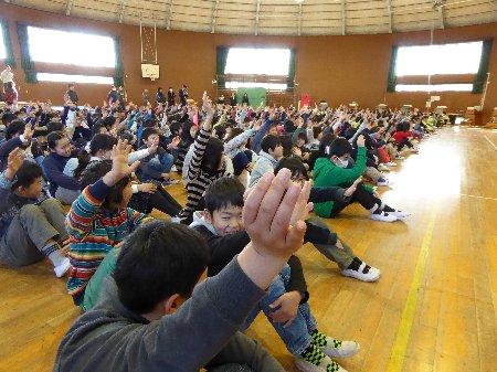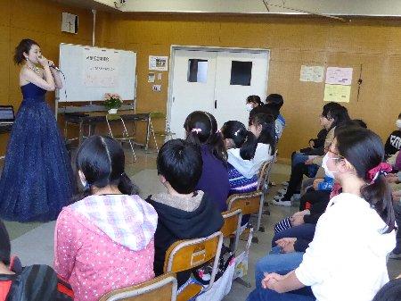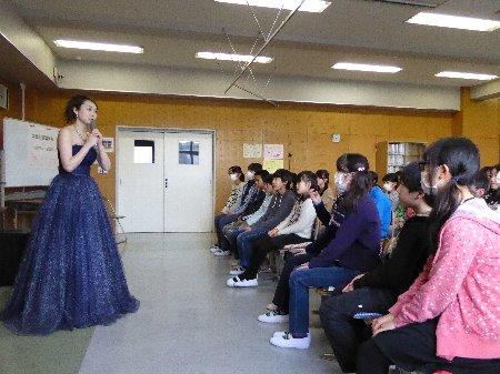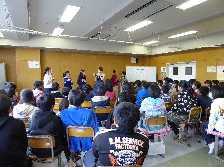 そこで、武里中学校の音楽の先生と合唱部の子どもたちに来ていただいて、音楽の出張授業をしていただきました。
