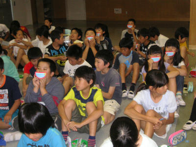 その後、体験コーナーが始まると、太鼓打ちを志願する子どもたちの声が丸い体育館に響き渡りました。