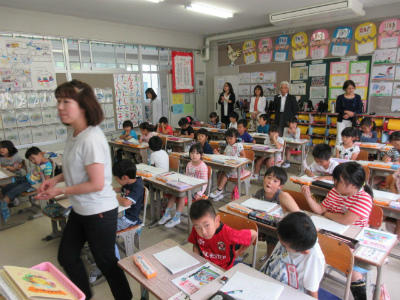 校長室での懇談後、各教室の授業や子どもたちの様子を参観していただきました。