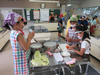 わかたけホール(ランチルーム)で、 1年生と6年生のなかよし給食が行われました。