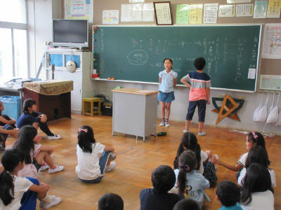 健康委員会は虫歯予防の劇、飼育委員会は活動内容やチャボについてのクイズを行いました。
