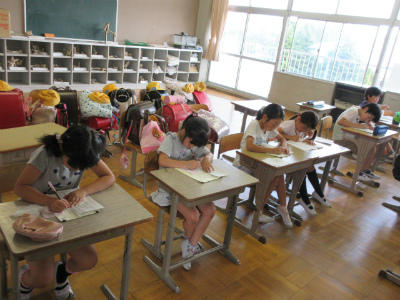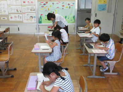学年ごとの教室に分かれ、宿題や自主学習などに取り組みました。わからないときには、すぐに教えてもらうことができます。