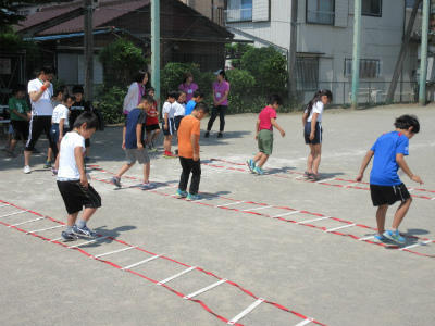 低中学年の児童を中心に、ラダーを使用したトレーニングを行いました。