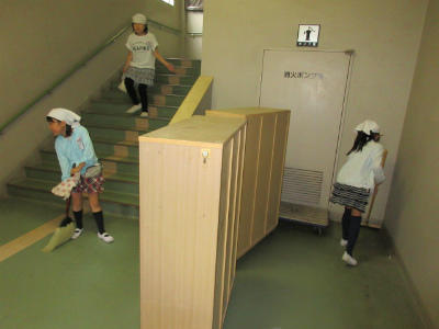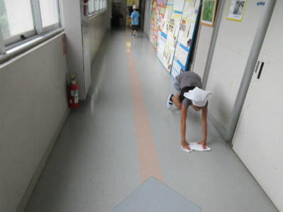 掃除の様子です。ほうきとぞうきんを上手に使いながら、学校をきれいにします。
