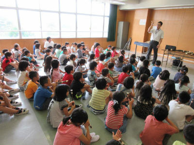 6月の音楽朝会。今月の歌は「カントリーロード」です。