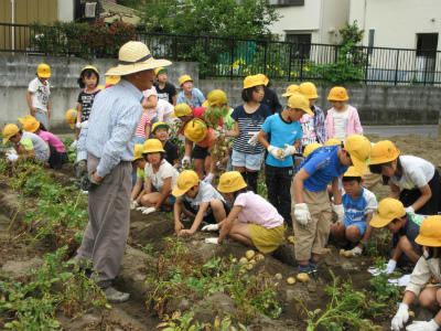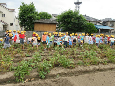 3月に自分たちで植えたいもが、どれくらい大きくなっているかを楽しみにやってきた2・3年生。どんないもが出てくるのでしょうか。