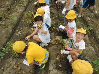 今年も、学校ファームの石川さんの御尽力により、2年生と3年生がいもほり体験をさせていただきました。