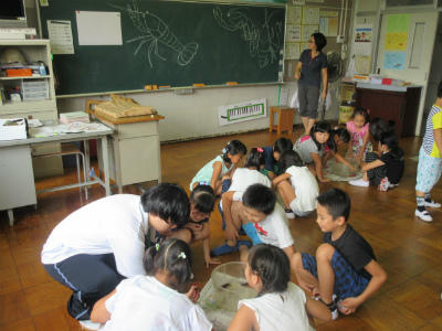 直接触れ合いながら体験的に観察する中で、ザリガニの生き生きとした特徴や動きを捉えていいきます。