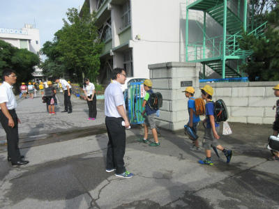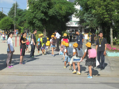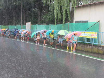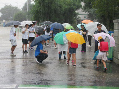 2学期になり、晴天が続いていましたが、とうとう雨が降ってしまいました。それも、かなり激しい雨となりましたが、通学班で安全に登校できました。