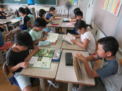 教室や図書室で宿題を済ませた後、校庭で遊んだりしました。
