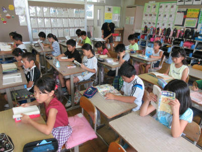 でも、教室には7月に設置されたエアコンがあるから大丈夫です。2校時、4年生は全員が算数の授業に集中していました。