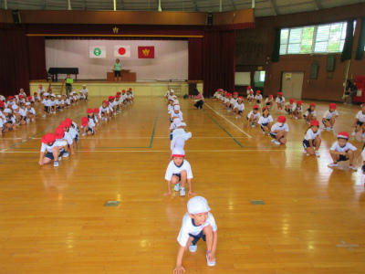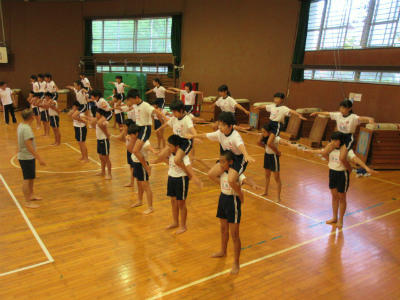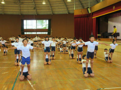 今週から、運動会練習が始まりました。体育館では組体操の基本技を練習していました。