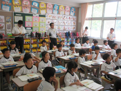 武里小では、1年生から担任の先生とともに音楽の先生が授業をしてくれます。