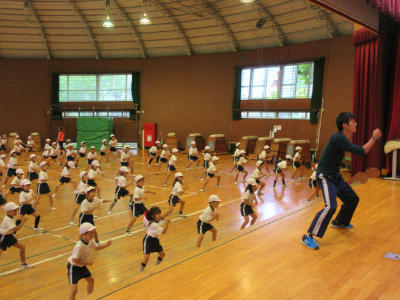 今日も雨天のため、体育館でダンスの練習です。早く校庭で練習したいですね。