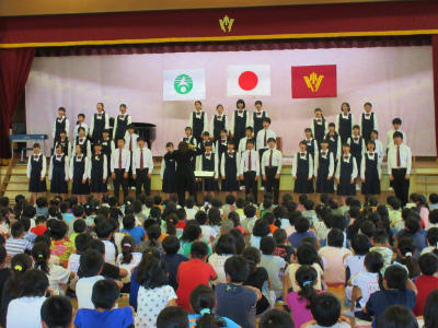 最後には、武中音楽部の皆さんが、武小児童とともに「カントリーロード」を歌ってくださいました。