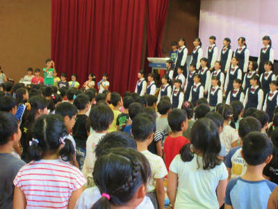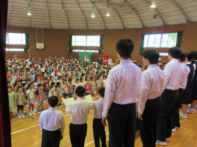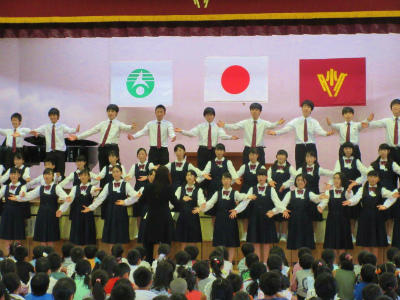 今年度も、武里中の音楽部の皆さんが、武小児童の前ですばらしい合唱を披露してくれました。きれいな歌声と高度な技能に、みんなびっくりです。