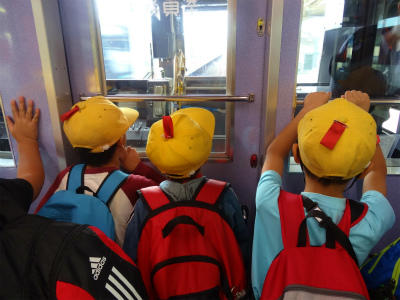 1・2年生が遠足に出かけました。一ノ割駅から電車に乗って、東武動物公園まで行きます。