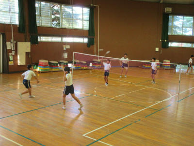 卓球クラブと並んで根強い人気を誇るバドミントンクラブ。丸い体育館を独占ですね。