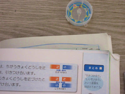 方位磁針の使い方を確認したり、砂鉄の性質を調べたりしています。