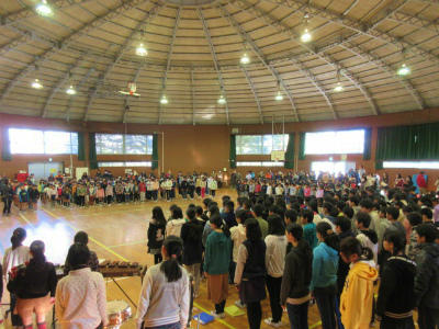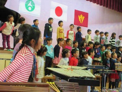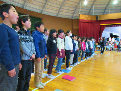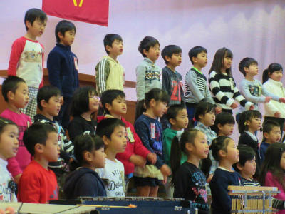 冷え込む体育館の中で、音楽朝会が始まりました。