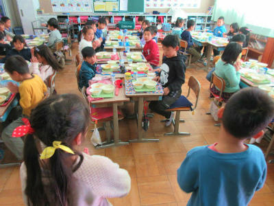 「いただきます」「ごちそうさま」「さようなら」などをみんなの前で言うのは、日直の仕事です。