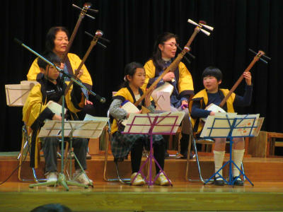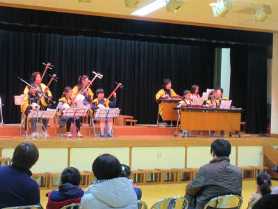 季節のコンサートでは、どようひろば(放課後子ども教室)で和楽器を教えていただいている児童が、講師の方とともに演奏しました。どようひろばOBの中学生も、一緒に演奏してくれました。