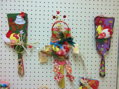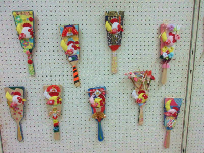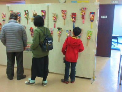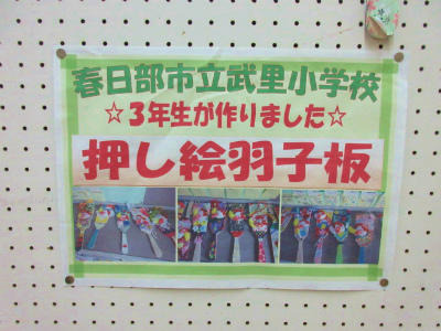 武里地区公民館にも、3年生が作った押し絵羽子板が展示されています。