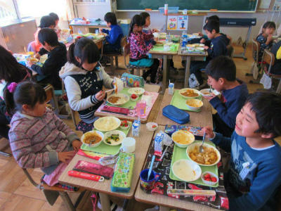 1年生は給食時のマナーがすばらしいのですが、食欲も旺盛です。