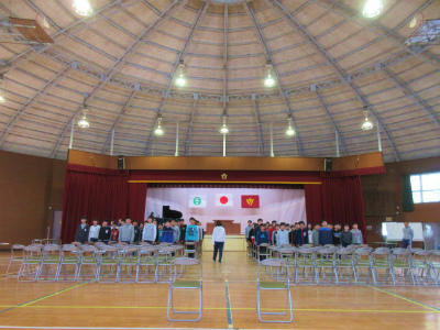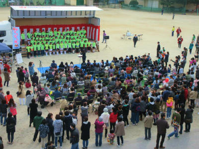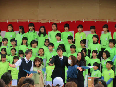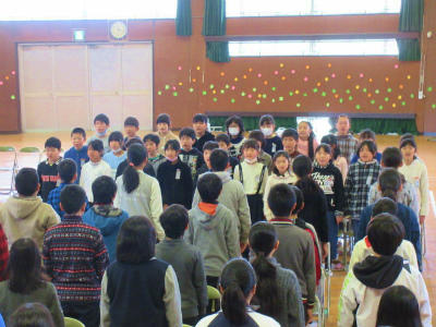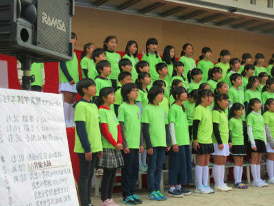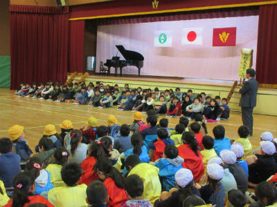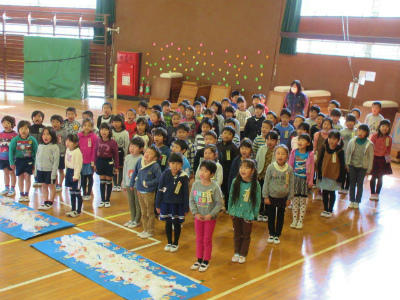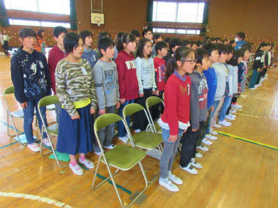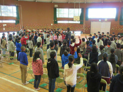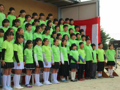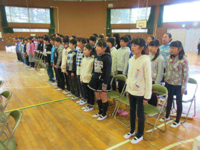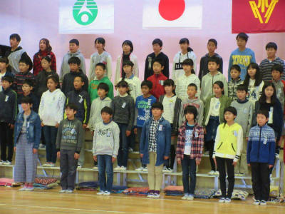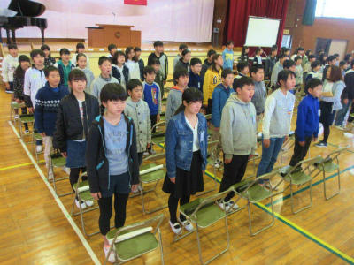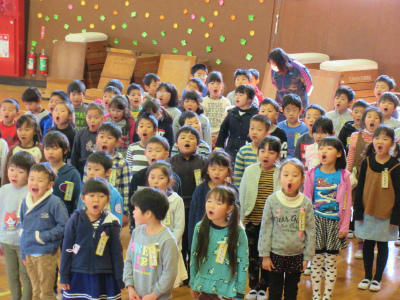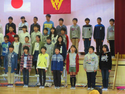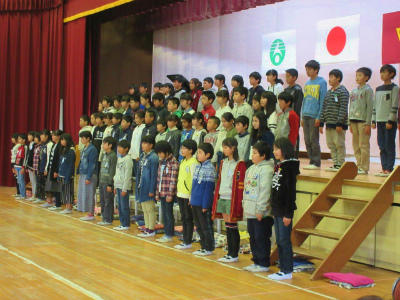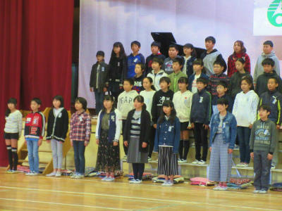 校長先生のお話の後、全校児童で校歌を合唱しました。