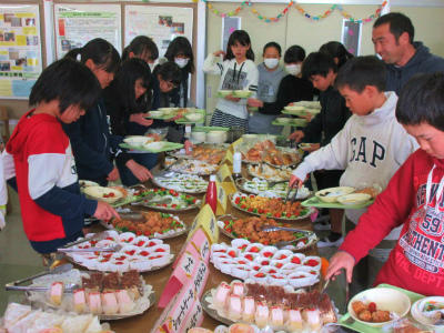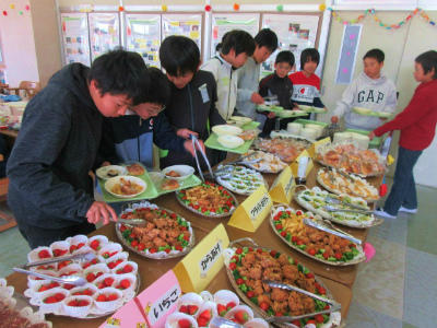 卒業前のお楽しみ、6年生のバイキング給食です。