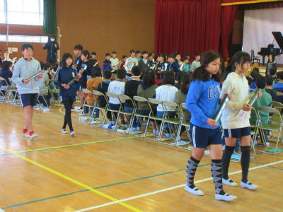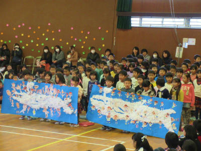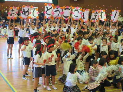 5年生も負けずに声量のある呼びかけや歌で応じ、卒業をお祝いすることができました。