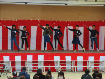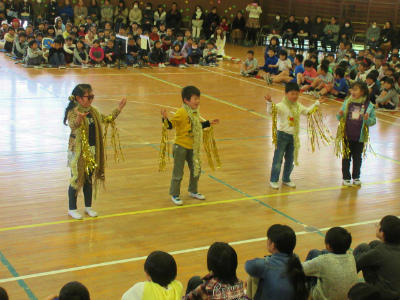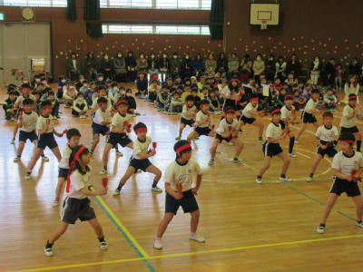 トップバッターの3年生。「ソイヤ」を元気に踊りました。