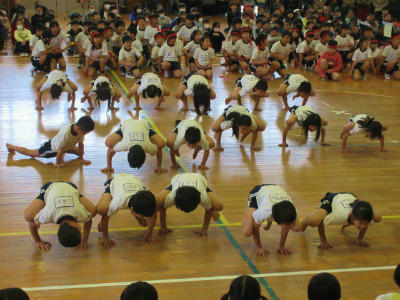今日は、体育の授業で6年生のクラスが765回という大記録を作りました。