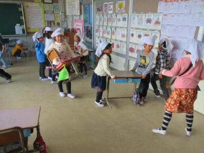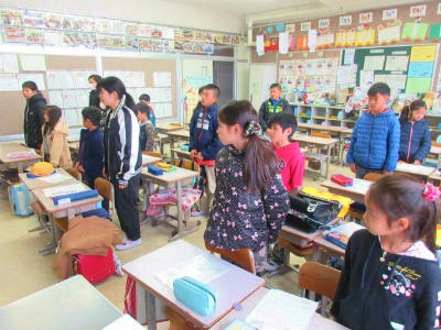 修了式の前日ということもあり、今日はお楽しみ会やお別れ会をやるクラスが目立ちました。