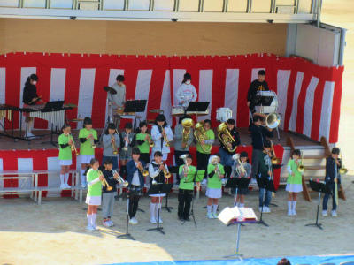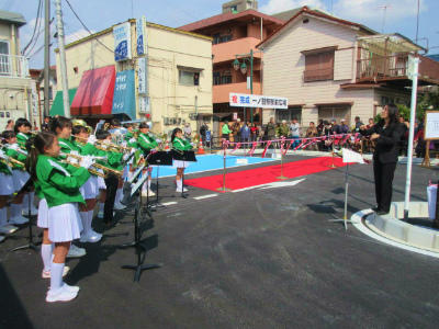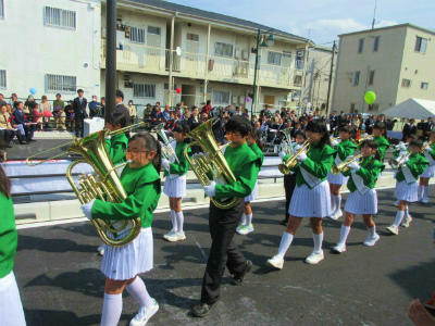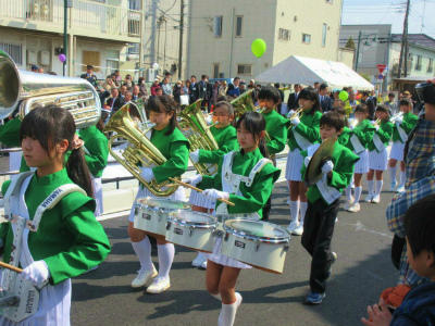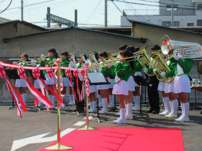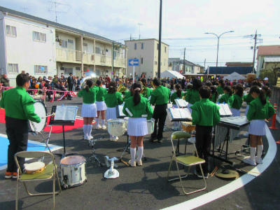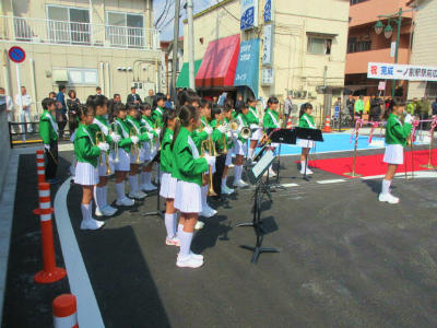 完成記念式典の前のオープニングセレモニーで、武里小学校の金管バンドクラブが演奏しました。
