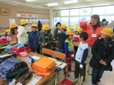 地区ごとに各教室に移動して、班長・副班長バッジの引継ぎ、集合時刻の確認、通学経路図の記入などを入念に行いました。
