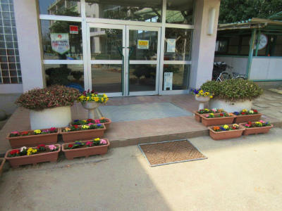 卒業式を前に、玄関前や花壇がすっかりきれいになりました。