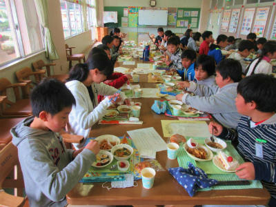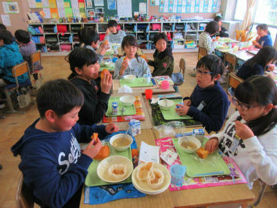 おかわりも自由でおいしいものを思う存分食べられる、夢のような給食です。