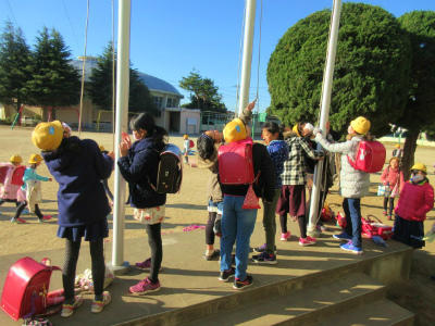 掲揚塔の旗あげや、通学班の班長など、しっかりと責任を果たしています。