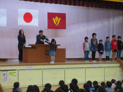 その後、各学年の代表児童が、校長先生から修了証をいただきました。