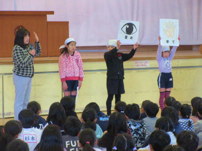 児童朝会のときの発表で慣れていたこともあり、今日は笑顔で演技ができました。