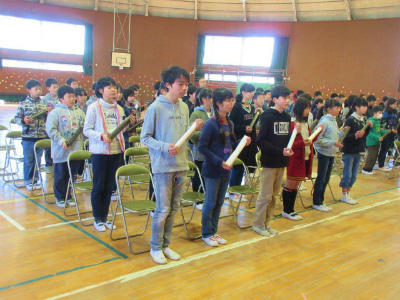 今日は、読書感想文、美術展、科学展、標語の表彰がありました。