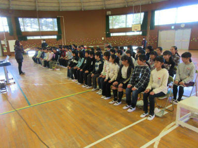 5年生が、入学式のときに1年生の前で歌う校歌の練習をしていました。