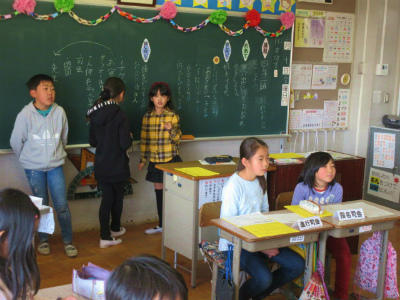 5年生は「寿限無」の群読です。高学年らしい、しっかりした発声ができていました。