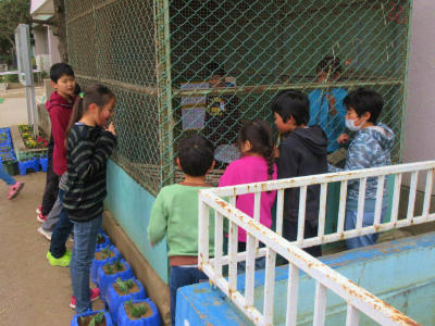 飼育小屋のまわりには、早速子どもたちが集まっていました。